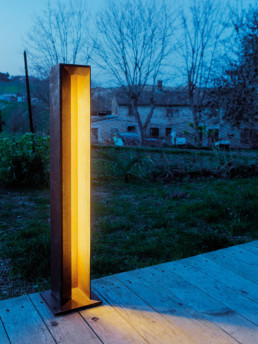 Pole for outsides, “Artù” comes in two different heights of 40 or 70 cm. The main characteristic of this lighting element is the luminous emission: it is infact inclined relative to the vertical, specially