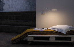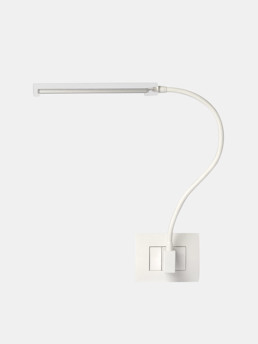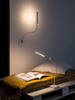“Epi” is a table or wall led lamp with a flexible arm in white or black and a transparent plexiglass terminal. The shape is linear and harmonic, the structure allows the orientation of the light source in