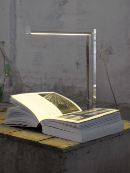From the combination of transparency and light is born “Libro di Luce”, a lamp for a careful and imperceptible illumination of the shelves. The structure of transparent plexiglass, thin like a pocket